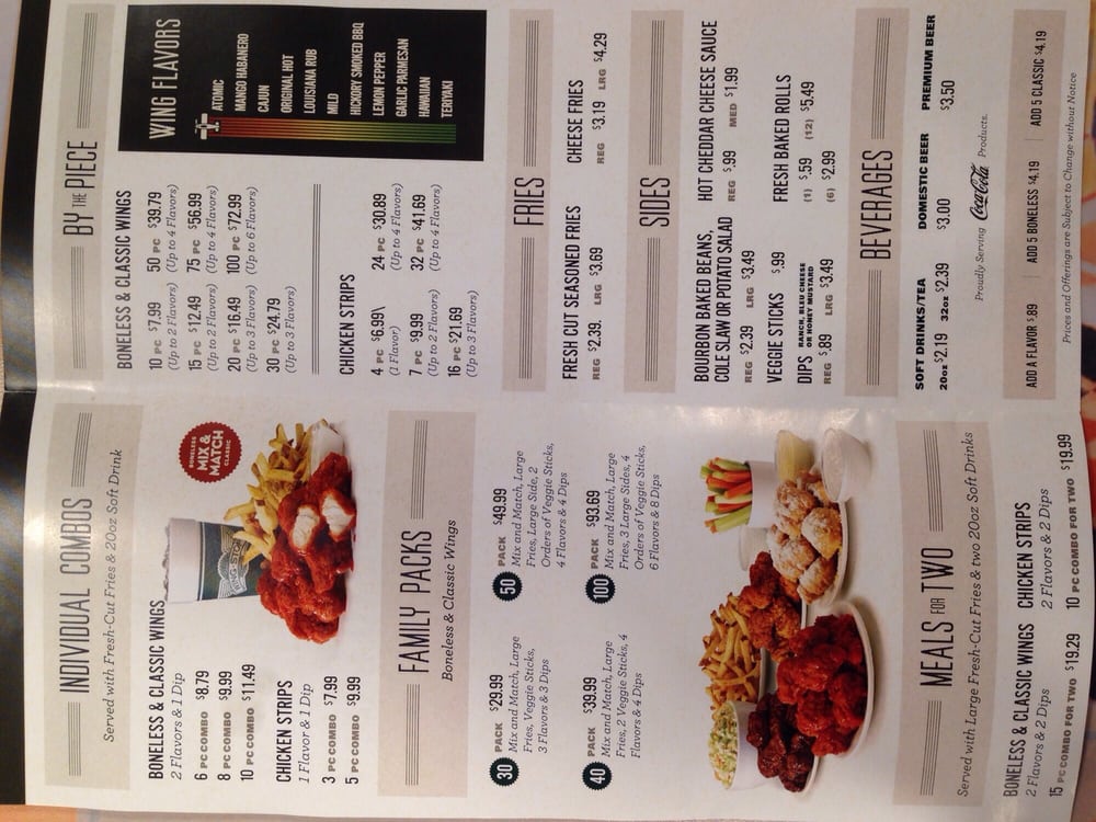 Comes with 20 Boneless Wings in your choice of 4 flavors, with a large fry and 2 dips. (Feeds 2-3)